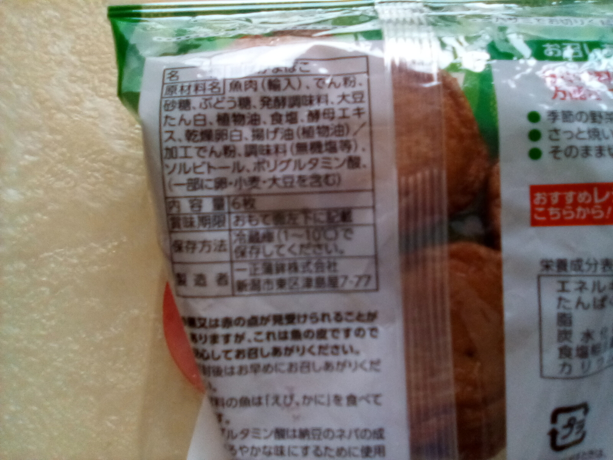 内容量は6枚(1枚19g)、製造は水産練り製品大手の一正蒲鉾株です。
